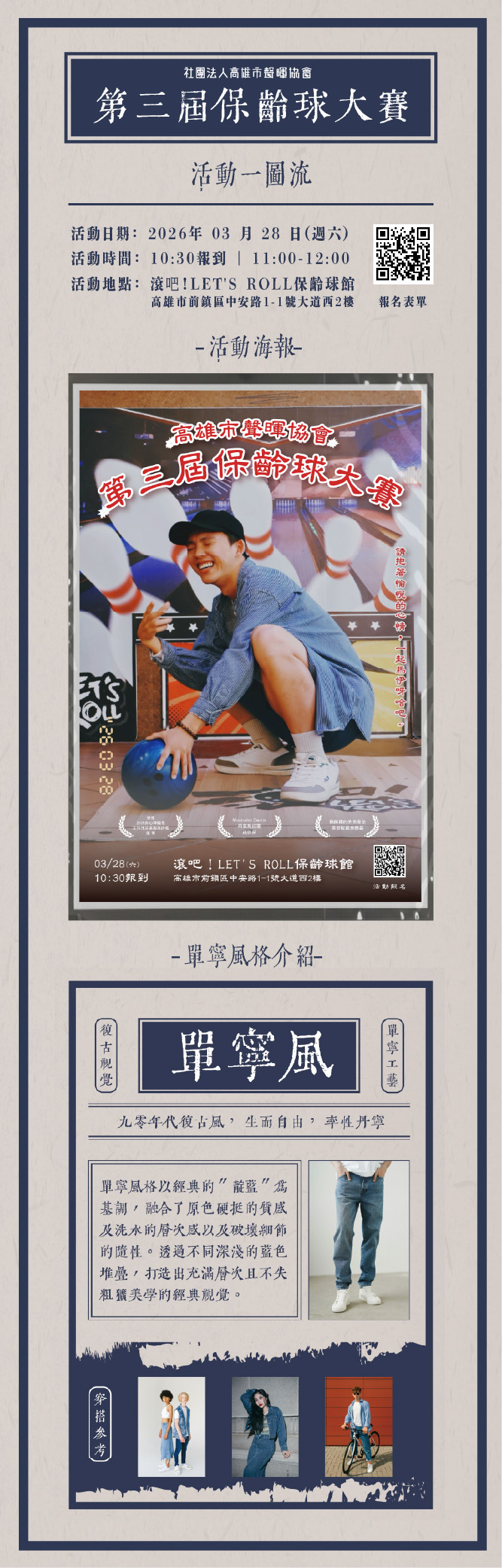 無論你是保齡球高手,還是想來感受熱鬧氣氛的朋友,快穿上你的單寧單品,一起在賽道上滾動出最帥氣的靛藍身影!